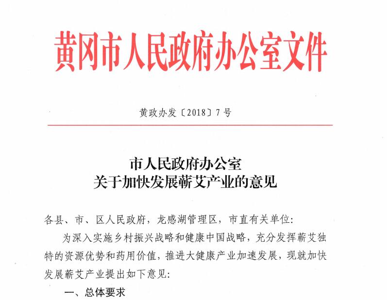 黃岡政府網(wǎng)消息:2月22日,市政府辦印發(fā)《關(guān)于加快發(fā)展蘄艾產(chǎn)業(yè)的意見》(下稱意見)。意見提出:力爭(zhēng)到2020年,全市蘄艾種植面積達(dá)到40萬畝,蘄艾產(chǎn)業(yè)綜合產(chǎn)值達(dá)到100億元以上。